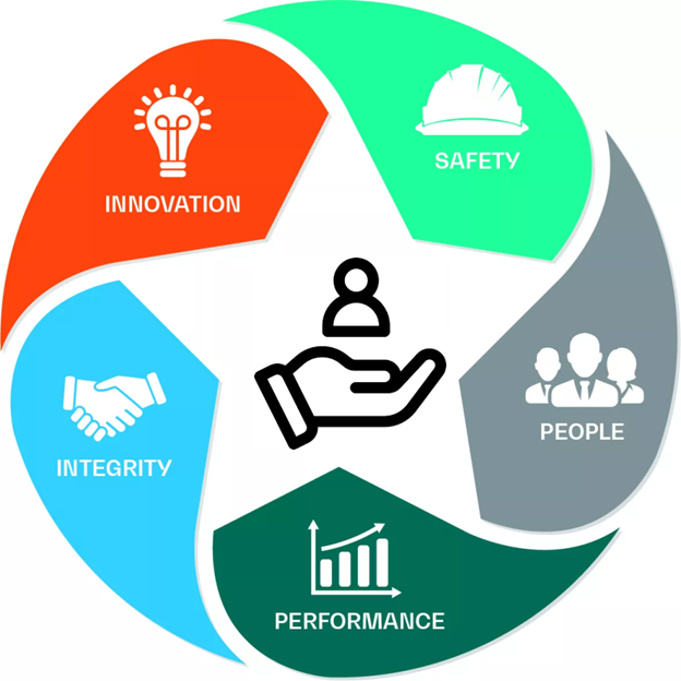 Au cœur de notre entreprise, se trouvent cinq valeurs fondamentales qui sont non seulement les piliers de notre culture, mais aussi les clés de notre succès continu.